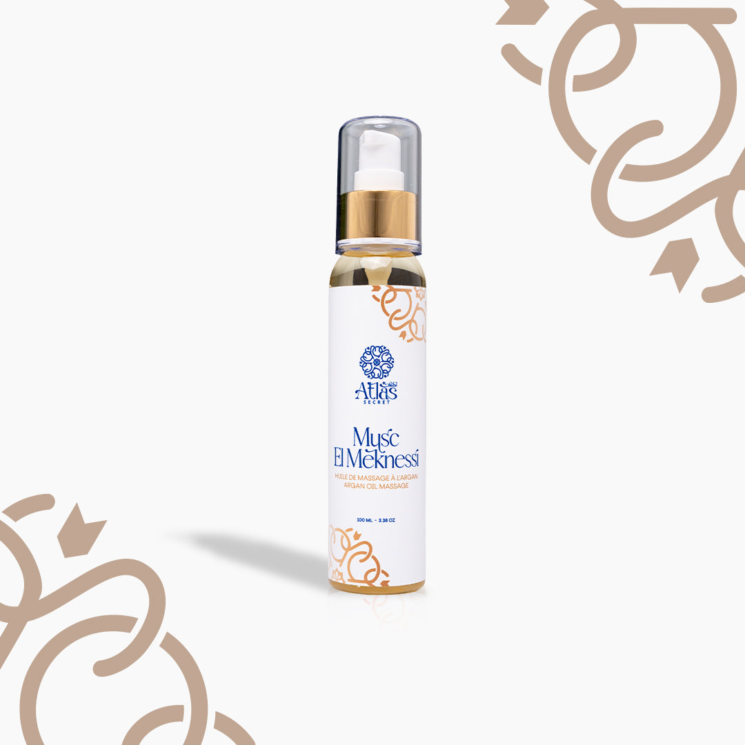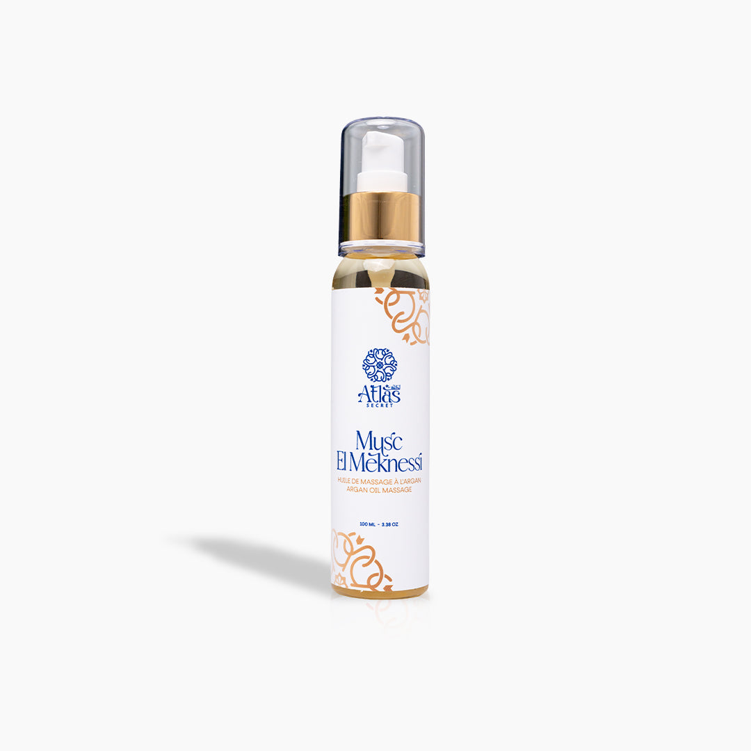 Découvrez l’Huile de massage Musc El Meknassi, une alliance précieuse d'huiles naturelles comme l'amande douce, le sésame, le raisin et l'abricot. Sa formule nourrissante hydrate votre peau en profondeur tout en apportant une sensation de douceur et de bien-être. Enrichie en vitamine E, elle protège et revitalise votre épiderme pendant le massage, sublimé par un parfum délicat et réconfortant. Offrez-vous un moment d'évasion et de relaxation à chaque utilisation.